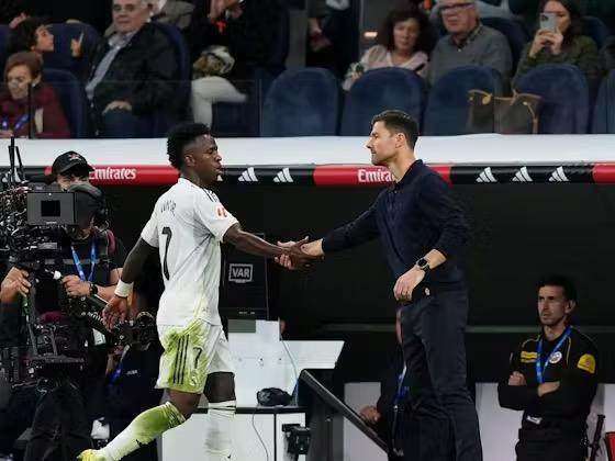 比赛进行到第79分钟,阿隆索再次用罗德里戈替换下了维尼修斯。尽管小熊没有进球,这次他没有再表现出不满,而是主动与阿隆索击掌表示尊重。皇马将在下周中的欧冠比赛中迎战强敌利物浦,维尼修斯曾在2022年欧冠决赛中打入制胜一球,皇马迫切需要他保持最佳的身体和心理状态,为球队做出贡献。